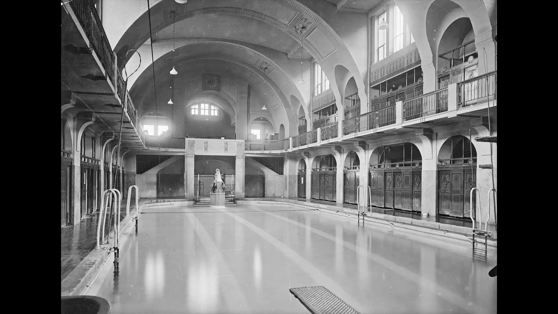 Mit Baukosten von rund 1,8 Millionen Mark wurde am 2. Januar 1914 eine „Kathedrale des Badens“ eröffnet. Das Volksbad bot einen Luxus, der für die breite Bevölkerung damals alles andere als selbstverständlich war: Drei prunkvolle Schwimmhallen (zwei für Männer, eine für Frauen), 66 Wannenbäder, ein Dampfbad, eine Wäscherei und sogar ein eigenes Hundebad. Die Architektur zitierte römische Thermen und verband modernste Eisenbeton-Technik mit filigranen Jugendstil-Details.