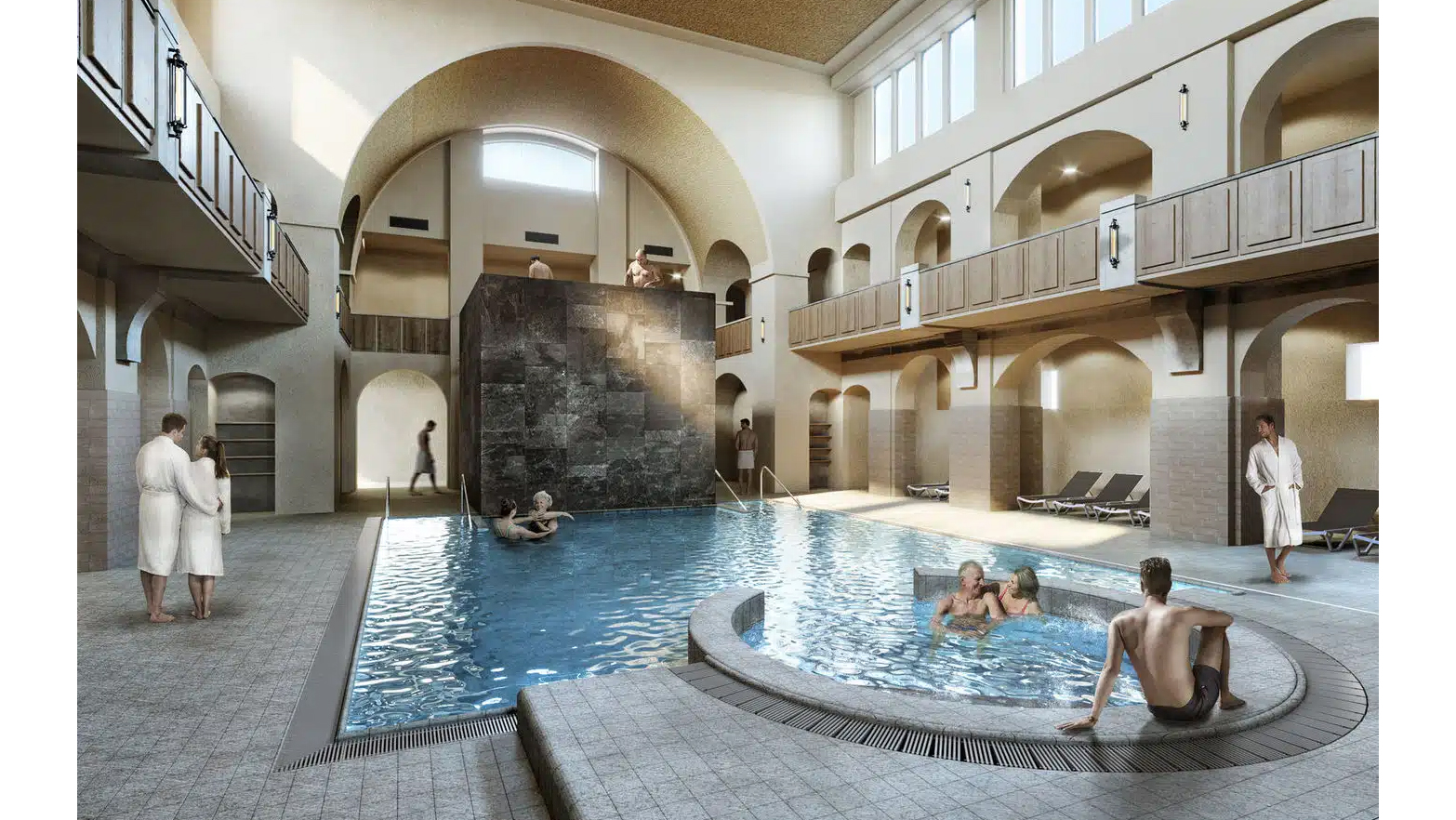 Halle III (Frauenhalle): Verwandelt sich in eine moderne Wellness- und Saunalandschaft.