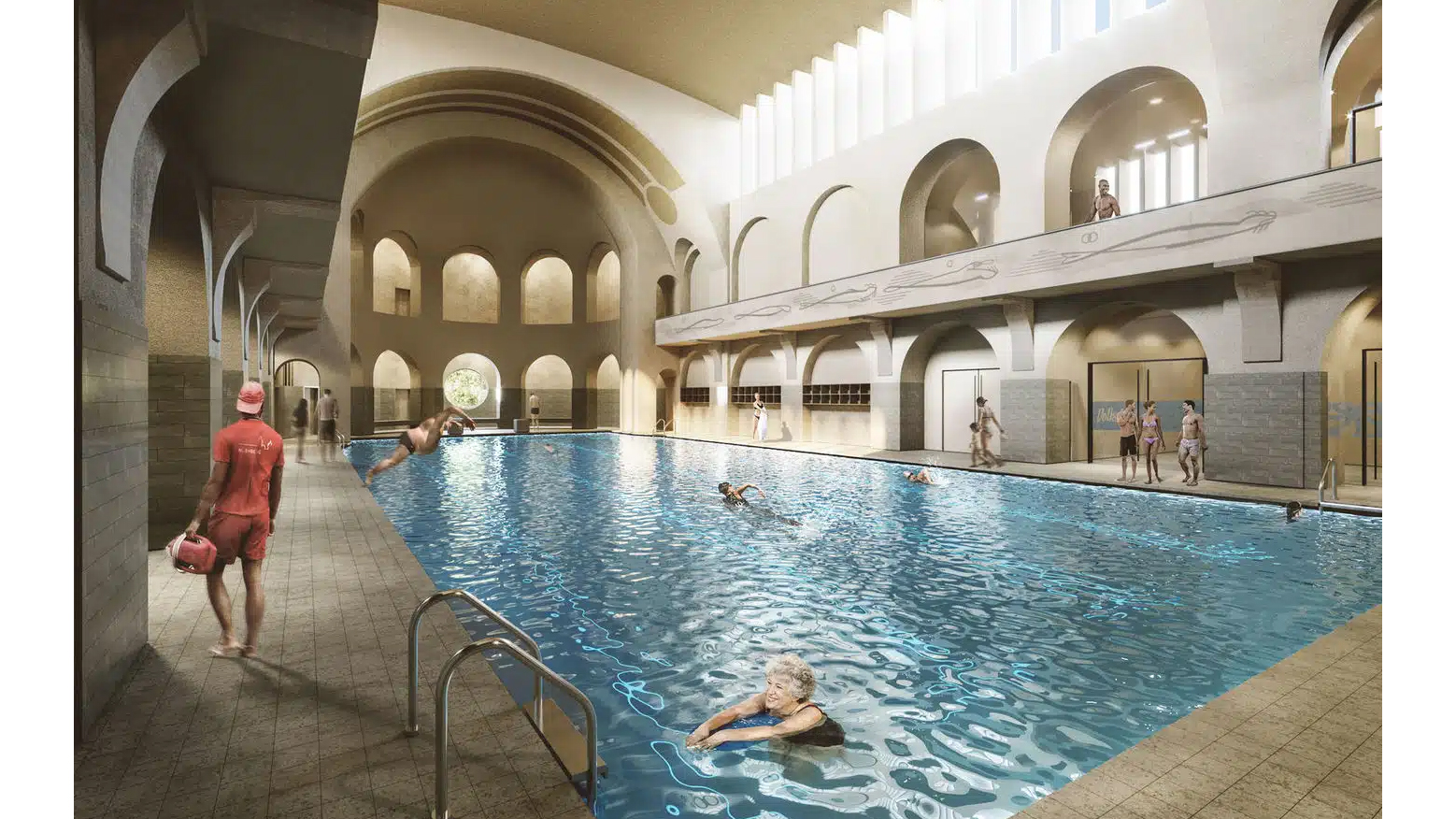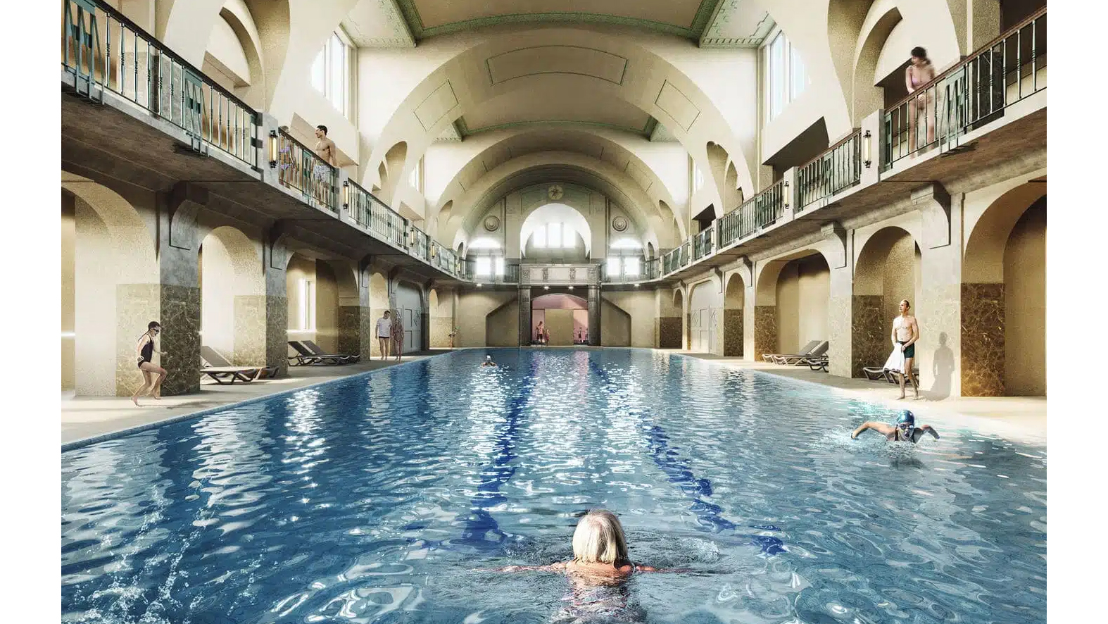 Halle I (ehem. Männerhalle): Wird originalgetreu saniert und steht künftig wieder dem öffentlichen Schwimmen zur Verfügung.